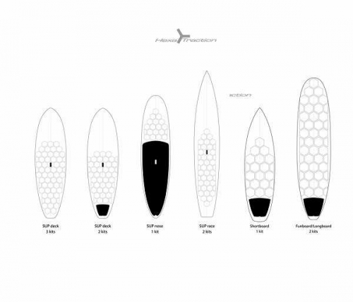 軽量、UV カット、耐熱、防水機能を兼ね備えたデッキトラクション。貼り易く、ワックスのような煩わしさが無く、ボードデザインを損なう事無く、適度なグリップを持つ。 ※ 16㎝六角形×18枚 六角形の半ピース×4枚 セット